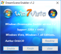 Вам не нужно устанавливать «DreamScenes Enabler», ведь утилита создана в переносном режиме и не требует распаковки на жёсткий диск. Для запуска патча нужно нажать на установочный EXE файл под администратором. Потом щелкнуть на «Enable», а после работы патча, нажать на «Finish».После «пропатчивания» системы, перезапустите компьютер. Затем добавляйте «обои» в папку с программой. Не забывайте отключать антивирусные программы, ведь защита находит «ложные вирусы» в патче.