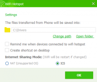 Помимо основной функции создания беспроводной точки доступа на устройстве, программное обеспечение позволяет компьютеру/ноутбуку осуществлять обмен файлов с другими устройствами. Чтобы получить файл с телефона, необходимо найти в меню приложения функцию «Get file from phone» в нижней части окна. Там же есть функция «Send file to phone», которая позволит отправить файл на телефон.Особенности