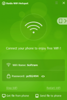 Baidu WiFi Hotspot довольно простая в установке утилита, которая автоматически настраивает нужные сетевые протоколы. То есть, после установки приложение не требует никаких дополнительных действий и настройки, а сразу получаете рабочую Хот Спот точку доступа. Все что от вас требуется – в появившемся окне ввести название и пароль. Приложение может сгенерировать данные значения автоматически, но лучше сделать это самостоятельно.Интерфейс