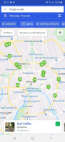 Отдельная вкладка содержит интерактивную карту, которая отображает все ближайшие объекты. Для просмотра подробной информации достаточно кликнуть на нужный маркер. Отображается описание, набор фотографий, рейтинг на основании других оценок, контакты и так далее.