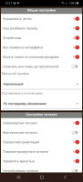 Предусмотрено большое количество параметров для режима чтения. Можно изменить шрифт, размер текста, фон, общий дизайн и многое другое. Доступно несколько режимов сортировки историй. Отдельная опция позволяет скрыть контент с элементами насилия.Встроен модуль воспроизведения голосом. Отдельный раздел параметров позволяет настроить голос, режим чтения и другие параметры модуля. Есть возможность ставить воспроизведение на паузу.