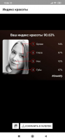 - Результат выдаётся в виде общего процента привлекательности, а также привлекательности отдельных черт лица;