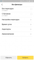 При желании можно выполнять фильтрацию доступных предложений по времени вылета и авиакомпании. Когда будет сделан выбор билета, то мобильный клиент перенаправит юзера на соответствующий сайт, чтобы забронировать заказ.