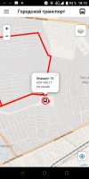Автобусы и маршрутные такси отображаются на карте в виде специальных иконок. Утилита на регулярной основе обновляет месторасположение всего общественного транспорта. Если нажать на иконку маршрутки или автобуса, юзер увидит красную линию, которая обозначает весь путь транспорта.