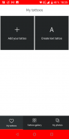 Понравившиеся татуировки можно помечать сердечками, в результате чего они появятся в перечне избранных. Фото тату на теле юзера хранятся в отдельной вкладке. Фотоснимки можно сделать сразу же во время примерки.Наряду с татуировками из каталога юзеры могут примерять изображения, скачанные из всемирной паутины. Необходимо иметь в виду, что число примерок ограничено. Для разблокировки дополнительных примерок нужно просмотреть короткий рекламный видеоролик.
