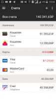 Интерфейс программы позволяет систематизировать текущие расходы, доходы и накопления. Кошельки можно группировать по категориям, их количество не ограничено. Можно отдельно указать кредитные карты, платежные системы, вклады, наличные средства и так далее.Встроенный алгоритм отслеживает снижение трат и рост прибыли, информация доступна на вкладке Транзакции. Раздел Отчеты позволяет сгенерировать различные отчеты и сохранить данные в файл Отдельно учитываются все долги – для этого предусмотрен соответствующий раздел.