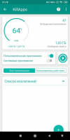Основная цель этой утилиты состоит в том, чтобы закрывать все игры и программы максимально быстро. Речь идёт о тех продуктах, которые запущены на смартфоне в данный момент. За счёт этой функции можно сэкономить заряд аккумулятора и повысить функционирование прибора.На основной странице можно увидеть перечень ПО, которые запущены в режиме реального времени. При помощи одного нажатия можно остановить их работу и тем самым освободить оперативную память.