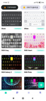 В программе присутствует огромный каталог с визуальными оформлениями виртуальной клавиатуры. Человеку достаточно открыть коллекцию и нажать по понравившемуся дизайну. В числе графических тем имеются: Galaxy, Gray, Heart, Black, White и прочие. При желании юзер способен добавить свой вариант оформления.Человеку разрешается выбрать звуковой эффект при нажатии по виртуальным кнопкам. Среди доступных звуков есть: брызги воды, механические щелчки, выстрелы и так далее.