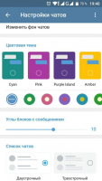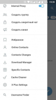 Основное меню позволяет получить доступ к дополнительным функциям. Встроен полноценный прокси-сервер, менеджер загрузок, модуль поиска пользователей по имени, отдельный список избранных контактов, предусмотрены расширенные возможности для изменения темы оформления. Разработчики расширили возможности для очистки истории и кэша, что позволяет эффективно освобождать место на накопителе.В настройках можно изменить режим оповещений, формат отображения чатов, изображений, работу со стикерами и многое другое. После активации режима невидимки другие пользователи не будут видеть статус активности аккаунта. Предусмотрены стандартные возможности для настройки отображения личной информации – можно скрыть номер, имя и логин.
