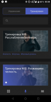 На главном дисплее программы имеется лента, куда непрерывно включаются новые учебные материалы в видеоформате. Свайп в левом направлении переводит на вторую вкладку, где находятся все тренировки и упражнения в формате небольших видеороликов с описанием решаемых задач.В третьей вкладке хранятся интенсивы и авторские курсы, доступ к которым является платным.