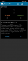 Программа показывает баланс денежных средств на счете сотового телефона и количество истраченных денег в виджете. Вдобавок приложение собирает информацию о лимитах интернета, долгах, остатке бесплатных SMS и причитающихся бонусах. Сведения за неделю показываются в статистике затрат и пополнений.Обновление баланса осуществляется в автоматическом режиме в полночь. после выхода из всемирной паутины и звонка. Юзер может настроить регулярные запросы 10, 5 или 2 раза в сутки.