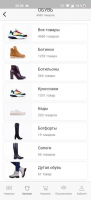 В мобильной программе содержится каталог со всеми товарами, которые продаются в одноимённой торговой сети. Для удобства покупателя весь ассортимент сервиса отсортирован по разделам. В их числе: нижнее бельё, одежда, сумки, обувь и аксессуары. В каждом разделе имеются подкатегории. К примеру, в разделе «Обувь» есть следующие группы товаров:- Тапочки;