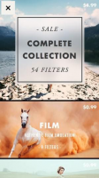 Предусмотрен обширный каталог уникальных фильтров, которые позволяют буквально в один клик получить контент в определенном стиле. Сложностей в процессе поиска не возникает, поскольку элементы разбиты на логичные категории:- пленка;