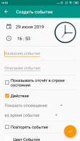 При создании нового события необходимо указать название, дату и время, а также короткое описание. Можно добавить иконку их встроенного набора – в каталоге более 50 элементов для разных ситуаций.