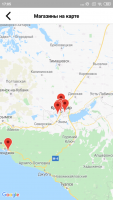 - Для поиска магазина можно воспользоваться встроенной интерактивной картой;