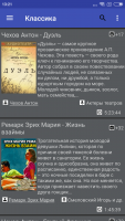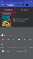 Для каждой книги сформирована отдельная страница с подробным описанием произведения. Датировка, краткое описание, жанр и другая информация приложены. Если пользователю покажется недостаточным количество имеющейся в каталоге литературы или он не найдет нужную книгу, то приложение поддерживает функцию загрузки сторонних аудиофайлов соответствующего формата из памяти устройства. Таким же образом можно и скачать аудиокнигу из библиотеки на свой девайс, чтобы продолжать ее слушать при отсутствии интернет соединения.