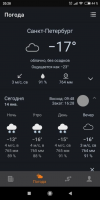 В соответствующем разделе новостной утилиты пользователь способен следить за текущими курсами различных валют. По умолчанию программа отображает сведения о евро и долларе США. Однако человек может посмотреть курсы других денежных валют, в том числе казахстанского тенге, турецкой лиры, японской иены и чешской кроны. Все представленные в данной вкладке данные поступают от ЦБ РФ.Программа даёт возможность отслеживать погоду, включая силу ветра, влажность и температуру. При этом в мобильном приложении имеется прогноз на семь ближайших дней.