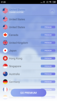 Перед подключением к удалённому серверу человеку следует выбрать государство. В бесплатной версии программы юзеру доступны только серверы из США. Если же пользователь купит премиум подписку, то ему откроются точки подключения из Австралии, Великобритании, Канады, Германии, Японии, Нидерландов, Франции и других государств.Безопасность