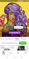 Recolor - Android-приложение, которое позволяет раскрашивать различные рисунки. Встроенный каталог содержит большое количество раскрасок на разные темы. Разработчики позиционируют платформу как инструмент для снятия стресса. Поддерживается возможность загружать собственные рисунки для дальнейшей обработки.