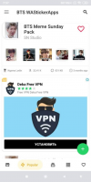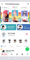 Среди них можно отметить следующие моменты:- Присутствует возможность скачивания любого стикера с героем из группы BTS;