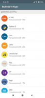 Пользователь волен выбрать любой курс из представленного перечня и приступить к его освоению. Изучение языка начинается с простейших вещей, после чего происходит постепенный переход к более сложным аспектам программирования. Специально для чтения теоретических материалов в мобильную утилиту добавлен ридер. При этом юзеру разрешено менять величину символов под свои предпочтения.В каждом учебном курсе имеются тесты и практические задания. Выполнять последние можно прямо в мобильной программе через встроенный редактор программного кода.
