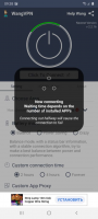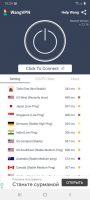 Подключение потребует просто нажать на значок в самом центре пользовательского интерфейса. После этого запустится попытка соединения с VPN сервером. Если она окажется успешной, в верхней части поля уведомлений появится соответствующий ключ, который свидетельствует о подключении к беспроводной сети. Отметим, что также может потребоваться повторная попытка, которая связана с особенностями работы самой технологии.После подключения вы не только получите возможность посещать заблокированные ресурсы, но ещё и обеспечите собственную защиту от направленных атак в интернете. Дело в том, что все эти атаки будут направлены на сервер, который имеет от них устойчивость за счёт своих протоколов безопасности.