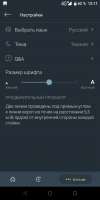 Настройки дают возможность выбрать тему интерфейса, в том числе светлую или тёмную. Кроме того, можно поменять размер шрифта, чтобы было более удобно читать информацию.Особенности