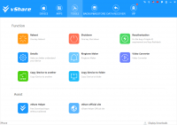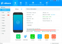 По внешнему виду vShare схож с пользующимися популярностью менеджерами портативных устройств. Иными словами, сведения о подключённом гаджете отображаются в главном окне программы. Здесь же можно осуществить запуск драйверов Apple Mobile Device Support, необходимых для корректного взаимодействия с Windows и установки мобильного приложения.Создатели программы предусмотрели раздел, в котором размещены приложения. Они предназначены для предоставления возможности установки игр или программ с ПК, просмотра списка обновлений.