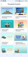 Главной особенностью приложения является обширный каталог макетов под разные типы видеоматериалов. Найти их можно на стартовой странице мобильной программы. Всего в приложении свыше тысячи разнообразных макетов. Для удобства создатели отсортировали их по тематическим группам. В их числе:- Музыкальные видео;
