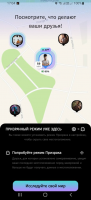Для доступа к функционалу необходимо пройти простую регистрацию, указывается только логин и пароль. Далее нужно предоставить программе доступ к текущему местоположению и контактам. Телефонную книгу можно использовать для добавления друзей или отправки приглашения присоединиться к сервису.Места на карте