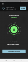 По умолчанию используется автоматический режим работы. Для подключения достаточно нажать на большую кнопку, которая расположена в центре экрана. Выбор сервера осуществляется после анализа его параметров – скорость, время доступа и загруженность. Это позволяет оптимально распределить нагрузку и обеспечить стабильную работу.При успешном подключении на панель уведомлений добавиться иконка в виде ключа. В процессе работы отображается статистика полученных и отправленных данных. Данные обновляются в реальном времени.