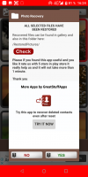 Как можно заметить, восстановление удаленных фото не соответствует заявленным функциям на странице разработчика. Да, поиск утерянных картинок возможен, но только в определённых условиях и с сильной потерей качества. При этом, проверить SD карту или внутренние папки на предмет утерянных фото будет невозможно.Нужно отметить, что данный софт обладает большим количеством внутренней рекламы. Она достаточно навязчива и будет появляться практически после каждого действия. Это может немного мешать работе с программой.