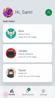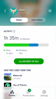 Приложение даёт возможность управлять семейной учётной записью и детскими аккаунтами. Можно посмотреть статистику времени, которое было потрачено детьми за времяпрепровождением в играх в течение определенного временного промежутка. Без предварительного запроса дети не смогут покупать игры в магазине.Особенности