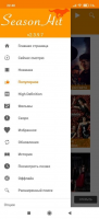 Открыв боковое меню пользователь обнаружит ряд разделов с контентом. В их числе: высокое качество, новинки, главная, скоро выйдут, обновления и так далее. Ещё в этом меню есть вкладка с контентом, который юзер смотрит в текущий момент.