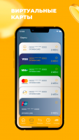 - Доступна отправка средств другим пользователям с профилями или банковскими картами;