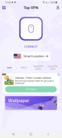 Top VPN – стандартный VPN клиент, чья задача заключается в замене ip-адреса пользователя при помощи подключения к внешнему серверу. Пользователь может выбрать страну подключения и изменить сервер, чтобы улучшить скорость соединения и подобрать оптимальные условия для допуска к интересующим сервисам. Как правило, VPN используется чтобы обойти блокировки на региональном уровне.