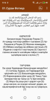 Религиозные таджики могут прочитать Коран в любом месте и в любое время при помощи этого софта. Он включает в себя суры, которые классифицированы хронологически. Уникальные тексты на арабском языке меняются на таджикский, что очень удобно. Суры воспроизводятся в формате аудио, что идеально подойдет для людей с плохим зрением. Перевод выполнен без потери оригинального смысла, поэтому вы будете читать достоверный текст. Вы всё так же сможете читать духовные послания пророка Магомета при помощи легкого переводчика. Переключайтесь от одного стиха к иному за счёт сенсорных кнопок.Меню