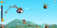 После сбора монет, их можно потратить на некоторые улучшения. Они позволят забрасывать главного героя дальше, вносить больше урона врагам или навешивать на него дополнительные бонусы, по типу динамитных шашек для нанесения урона по области. Также есть интересная механика с энергетическими напитками, которые можно выпить прямо в полёте и восстановить его скорость. Отметим, что энергетики не восстанавливаются после попытки и их нужно каждый раз приобретать за монеты отдельно.