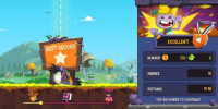 Все уровни будут повторяться, поскольку задача в них одна и та же – докинуть главного героя до логово злодея. Для этого нужно разогнать кабана в самом начале и выкинуть персонажа из него, тем самым запустив мистера Боулдера в полёт. Находясь в воздухе герой может управлять его местоположением, чтобы уворачиваться от ловушек и атаковать противников. Также важно собирать бонусные монеты, которые являются основной валютой в данном проекте.После сбора монет, их можно потратить на некоторые улучшения. Они позволят забрасывать главного героя дальше, вносить больше урона врагам или навешивать на него дополнительные бонусы, по типу динамитных шашек для нанесения урона по области. Также есть интересная механика с энергетическими напитками, которые можно выпить прямо в полёте и восстановить его скорость. Отметим, что энергетики не восстанавливаются после попытки и их нужно каждый раз приобретать за монеты отдельно.