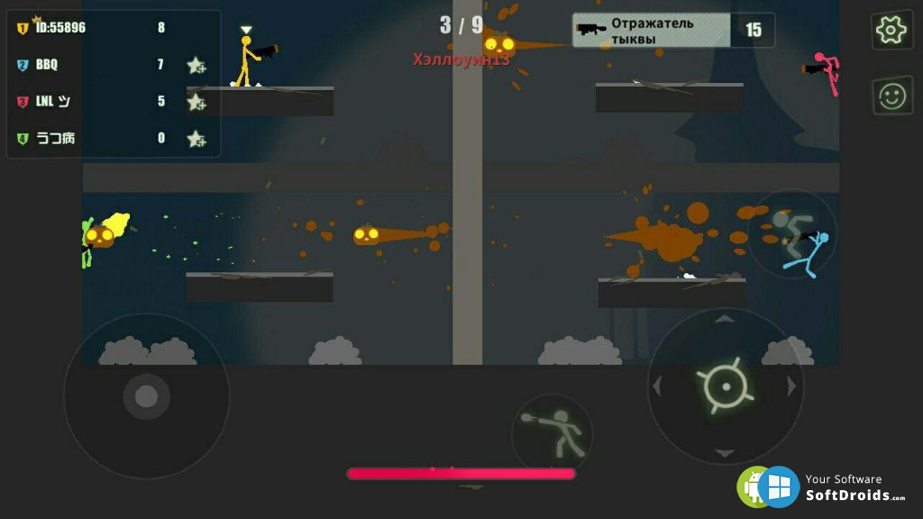 Stick Fight — это двухмерный экшен для устройств на Android. Пользователи будут соревноваться друг с другом в режиме онлайн. Игра разделена на отдельные уровни и рассчитана на участие четырех игроков одновременно. Каждая арена отличается уникальной геометрией, определенным набором объектов, ловушек и доступного вооружения. На некоторых картах предлагаются палки для ближнего боя, в других же можно использовать огнестрельное оружие и даже крупнокалиберные пушки.