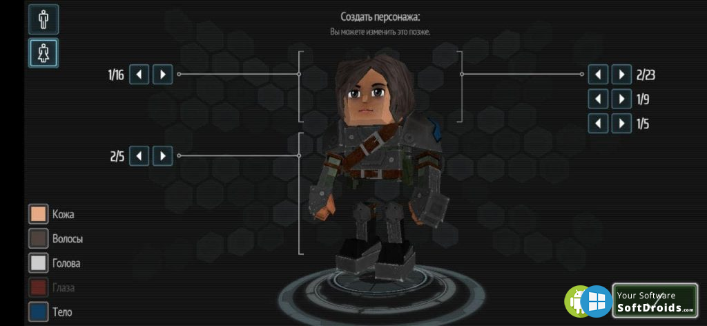 Прежде чем начать играть, пользователи должны создать своего персонажа. Для этого доступна возможность выбрать пол героя, а затем приступить к более детальной настройке внешности. Игроки могут настроить различные параметры, такие как форма головы, костюм, прическа, черты лица и аксессуары. Кроме того, в конструкторе можно выбрать не только человеческую внешность, но и более необычные образы — робота, рептилию, монстра, инопланетянина и другие.Дополнительно игроки могут изменить расцветку ряда элементов, включая: