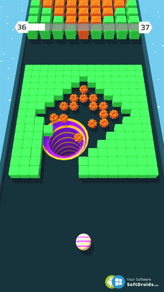 Постепенно вместо статичных блоков начинают встречаться подвижные конструкции, требующие ещё большей концентрации и точности действий. Некоторые элементы, сталкиваясь с воронкой, разлетаются в стороны, что может непредсказуемо изменить ситуацию на уровне и даже заблокировать путь для персонажа.Игрок управляет движением черной дыры, перемещая её влево, вправо, вверх и вниз, чтобы захватывать все возможные препятствия и обеспечивать безопасный проход. Чем больше объектов собрано, тем выше итоговый счёт. Дополнительно в игре предусмотрена система кастомизации: игроки могут изменять внешний вид персонажа, используя различные скины — от забавных мячей до миниатюрных человечков.