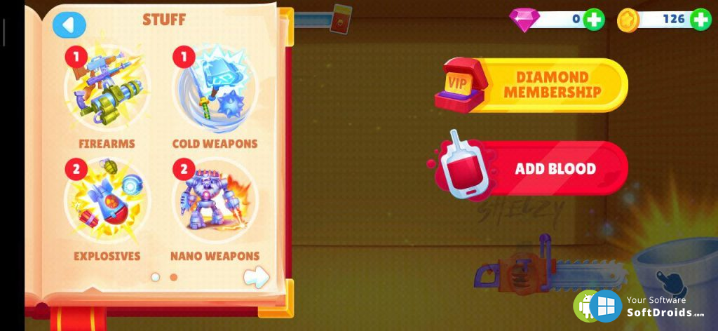 Игрокам доступно множество вариантов для нанесения повреждений. В начале многие инструменты заблокированы, но по мере прохождения уровней открываются новые способы уничтожения персонажа. В арсенале есть огнестрельное оружие, ножи, гранаты, лазерные установки и даже атомная бомба. Часть оружия открывается за внутриигровую валюту, которую можно заработать в процессе, а некоторые виды доступны только при покупке за реальные деньги.Особенности