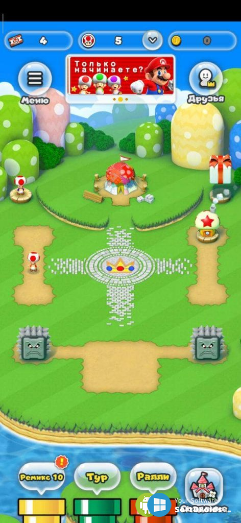 В режиме «всемирный тур» предстоит пройти сюжетные уровни, где главной целью является спасение принцессы Пич, похищенной Боузером. Режим «ремикс 10» представляет собой серию коротких уровней без ограничений по количеству. В «ралли с тоадами» игроки соревнуются с пользователями со всего мира, а в режиме строительства королевства можно собирать монеты и тоадов для создания собственного уникального пространства.Стоит отметить, что все эти режимы доступны для бесплатного ознакомления, однако полный доступ к ним открывается только после покупки за реальные деньги. Игра характеризуется простым и понятным управлением, наличием четырёх разнообразных режимов и отсутствием рекламных вставок. Приложение можно скачать и использовать бесплатно, при этом оно поддерживается всеми современными версиями Android.