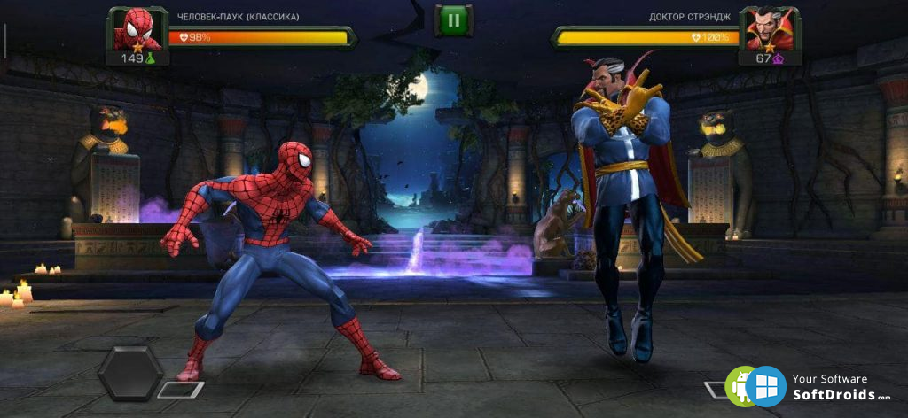 - Динамичные бои с участием супергероев и злодеев Marvel;
