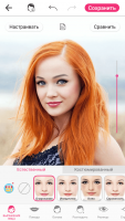 Функционал приложения достаточно обширен. Здесь можно экспериментировать над своим лицом так, как вам требуется. Чаще всего YouCam Makeup используют для скрытия недостатков. Здесь можно делать изменение в тоне кожи, исправлять её недостатки, подправить нос, наложить различные эффекты на глаза (по типу эффекта покраснения). Кроме того, данная программ позволяет рисовать на фотографии тональный крем, румяна, тушь, помадутени. Также есть возможность изменять не только тон кожи, но и её цвет, если это требуется.Но работать можно не только с лицо, в YouCam Makeup присутствуют и другие инструменты. Можно отбелить зубы на фотографиях с улыбкой, увеличить ресницы в объеме, опробовать различные прически. С данной утилитой вы сможете найти свой неповторимый стиль. Но кроме редактирования фотографий, ими можно делиться. Ваши фото смогут увидеть другие пользователи, как и вы сможете посмотреть на их творчество. В этой утилите даже есть гороскоп, позволяющий лучше следить за своей красотой.