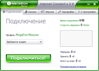 Программа не только распознаёт сеть и создаёт соединение с устройством. Мегафон Модем показывает количество денежных средств на лицевом счету, время работы пользователя и количество принятой и переданной информации. Утилита Internet Connect 2.0 оснащена графической шкалой в виде графика. Этот график отображает разницу в изменении скорости во время закачки и отдачи данных.В разделе «Баланс» вы проверяете количество денег на счету. После ввода аутентификационных данных профиля «Мегафон», вы просмотрите всю информацию. Раздел «Журнал» заносит все данные об ошибках, подключениях к сети и прочие неполадки в сетевом подключении. Войдя в «Журнал», вы узнаете время, проведённое в сети и всевозможные погрешности при работе в сети.