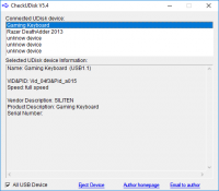 Портативная программа CheckUDisk создана в простой оболочке и работает на бесплатной основе. Подключите внешний жёсткий диск или флешку к компьютеру, а потом загрузите программу и откройте её. CheckUDisk проверяет систему и отображает информацию о подключённом устройстве.Если вы подключили несколько устройств – утилита проверит все по очереди. Укажите галочку на пункте «All USB Devices» и дождитесь, пока программа проверит все накопители. Переключайтесь между окнами и просматривайте данные о каждом из устройств. Полная характеристика накопителей выводится для всех проверяемых флешках.