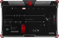 Работа в готовом профиле настроек «Bloody» позволяет выбирать их вручную. Каждый параметр в программе работает, как отдельный раздел. Интерфейс у Bloody создан необычно. Оформление оболочки программы создано в геймерском стиле.