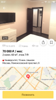 Встроенный фильтр может находить предложения по разным параметрам, например: по количеству комнат, цене, этажности, месторасположению и т.д. К каждому объявлению, помимо подробного описания, приложена реальная фотография. Если вы захотите получить больше фотографий, рекомендуем сообщить об этом продавцу. К тому же Яндекс Недвижимость позволяет отправлять сообщения и делать телефонные звонки прямо через приложение. Поэтому юзеру не придется тратить свои деньги, чтобы совершить звонок.